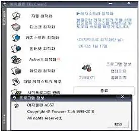 IE - Temporary Internet Files, 쿠키, 히스토리, 타이핑되었던 URL 주소, 자동등록 폼 히스토리, Index.dat, 캐쉬등을 삭제 window - Recent Document, 실행 메뉴, 자동완성 검색, 익스플로러 MRUs, 메뉴 캐쉬, 윈도 사이즈, 로케이션 캐쉬등을 삭제 system - 휴지통, Temporary Files, 메모리 덤프, 윈도 로그파일등을 삭제할 수 있다. 어플리케이션과 관련해서는 윈도 미디어 플레이어, 미디어 플레이어 클래식, 아크로뱃 리더, 오피스 Xp, 네로 버닝롬, Ms 워드 패드, Ms 페인트, MSN 메신저등의 사용내역 삭제 레지스트리 - 잘못 연결된 DLL, ActiveX/ Class issues, 어플리케이션, 폰트, 어플리케이션 패스, 헬..